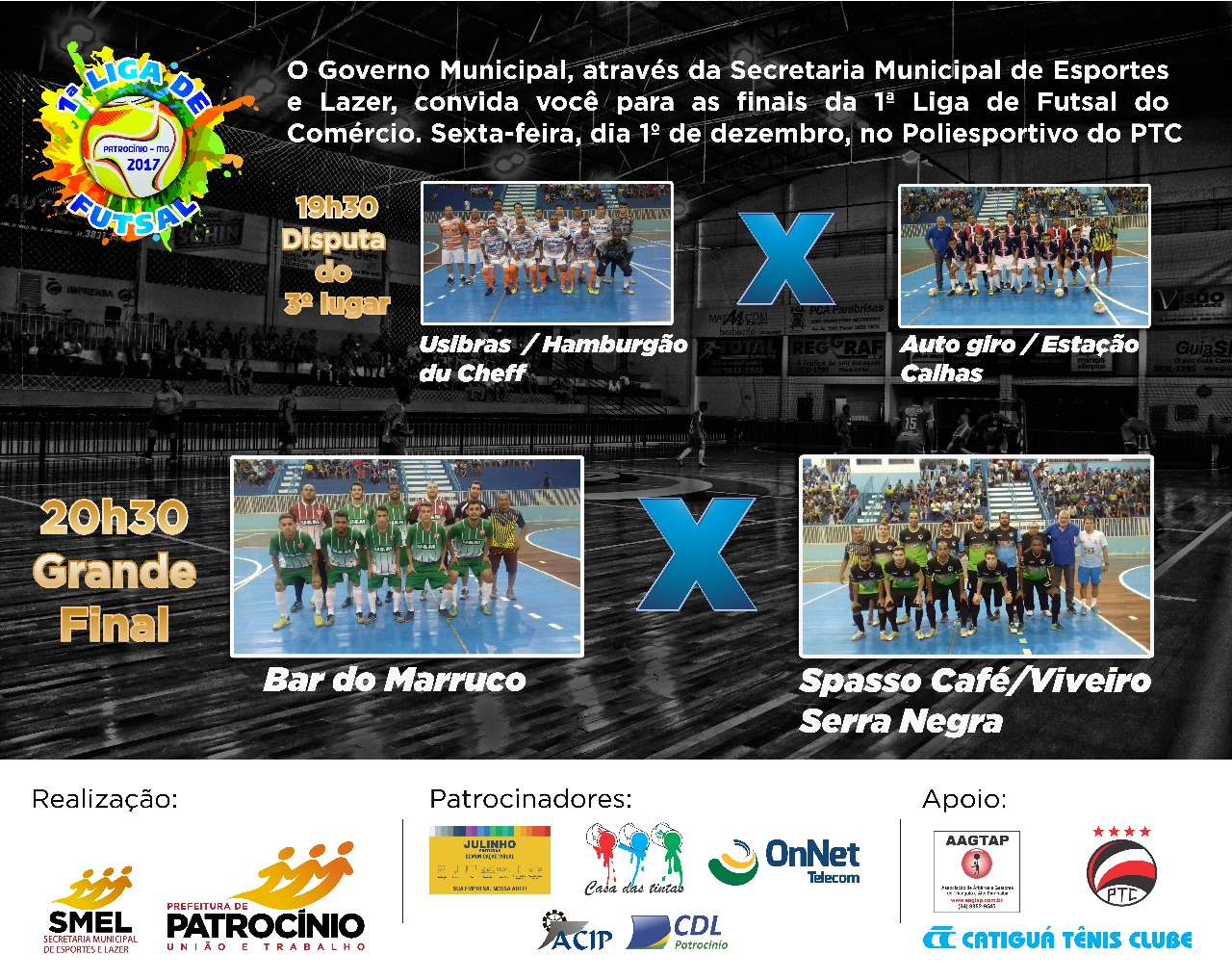 Aconteceu dia 1° de dezembro no Ginásio do Patrocínio Tênis Clube, a final da Copa da Primeira Liga de Futsal do Comércio organizada pela Secretaria Municipal de Esportes e Lazer e patrocinada pelas ACIP/CDL, Casa das Tintas, Julinho Pinturas e OnNet Telecom e também apoiadores: Patrocínio Tênis Clube, Casa das Tintas, Catiguá Tênis Clube e AAGTAPP – Associação de Árbitros e Gestores do Triângulo Mineiro e Alto Paranaíba.