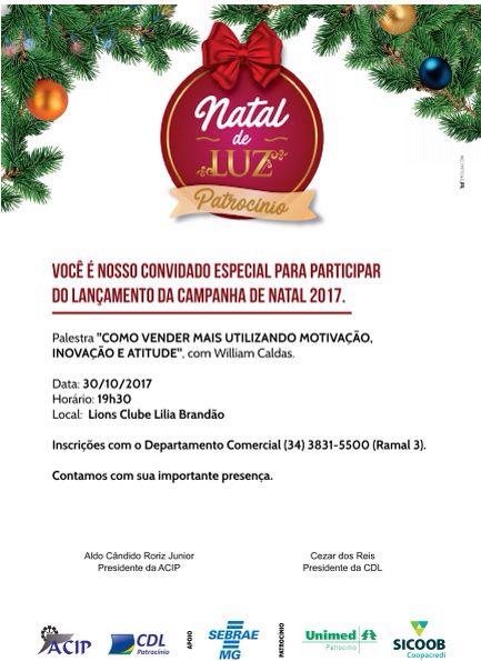 O objetivo é parabenizar o setor produtivo e empresarial da cidade convidando-oa a se associarem e unir esforços para a melhoria do comércio, da indústria e do segmento de serviços de Patrocínio.