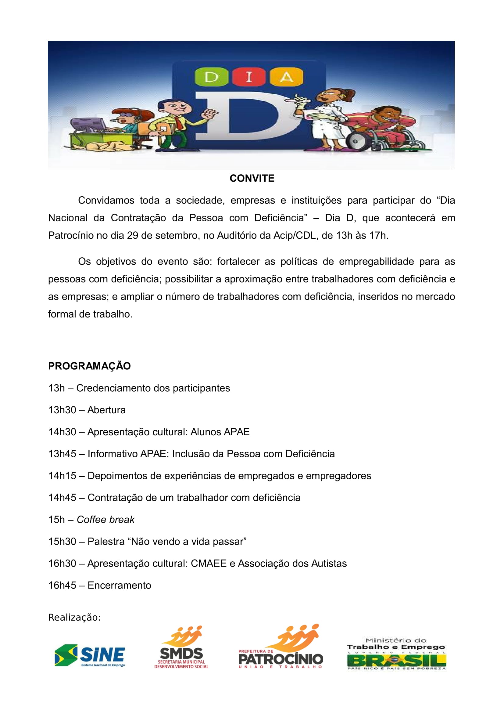 Participem! Dia D - Dia Nacional da Contratação da Pessoa com Deficiência.