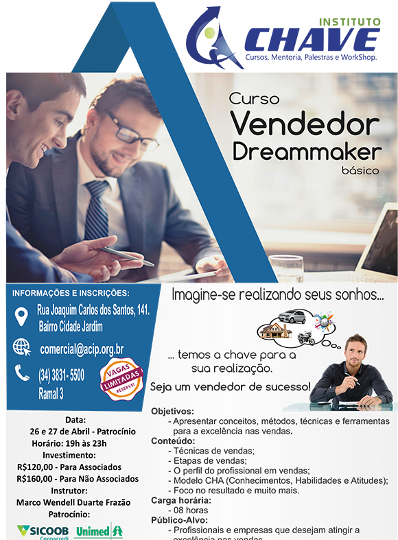 Evento gratuito, inscrições no: https://goo.gl/forms/ZV5GgWFMiAnKfsKn1 ou telefone 34 3832-4315 (também no 3831-5500, ramal 03). Local: ACIP/CDL de Patrocínio.