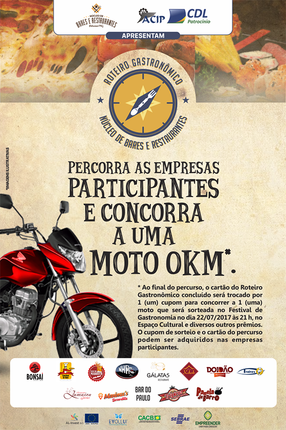 Experimente uma das delícias dos bares e restaurantes participantes e concorra a 1 (UMA) MOTO ZERO KM.