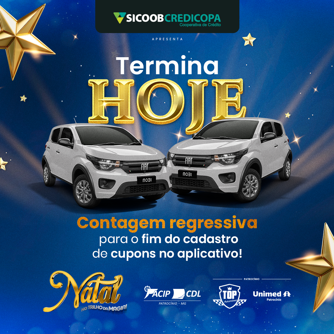 Esta quinta-feira, 2 de janeiro, é o último dia para os consumidores cadastrarem seus cupons no aplicativo da Associação Comercial e Industrial de Patrocínio (ACIP) e da Câmara de Dirigentes Lojistas (CDL) e concorrerem à premiação da Campanha de Natal das Entidades, intitulada “No Trilho da Magia!”. A oportunidade é válida para aqueles que adquiriram cupons ao realizar compras nas empresas participantes da Campanha de Natal de 2024.