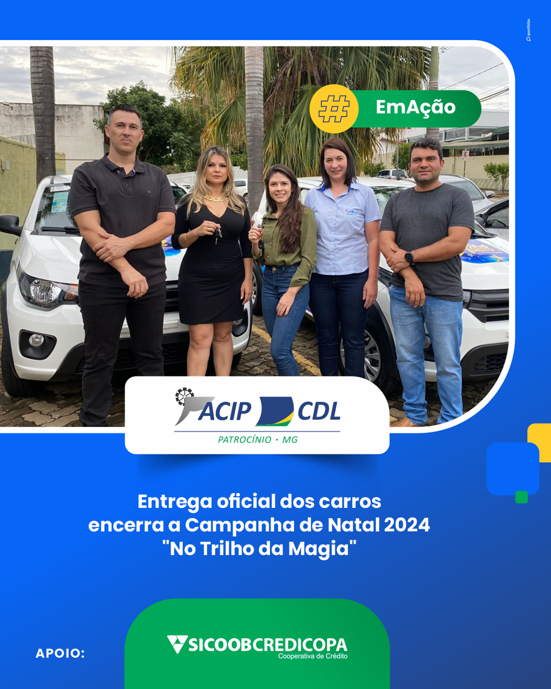 Realizada no comércio local entre 1º de novembro de 2024 e 2 de janeiro de 2025, a Campanha de Natal "No Trilho da Magia!", promovida pela Associação Comercial e Industrial de Patrocínio (ACIP) e pela Câmara de Dirigentes Lojistas (CDL), chegou ao fim nesta quarta-feira (8) com o emocionante teste das chaves dos veículos. A campanha trouxe uma premiação inédita na história das entidades: dois carros e vales-compras que somaram R$ 24.000,00, distribuídos de forma instantânea em valores de R$ 200,00 e R$ 400,00.