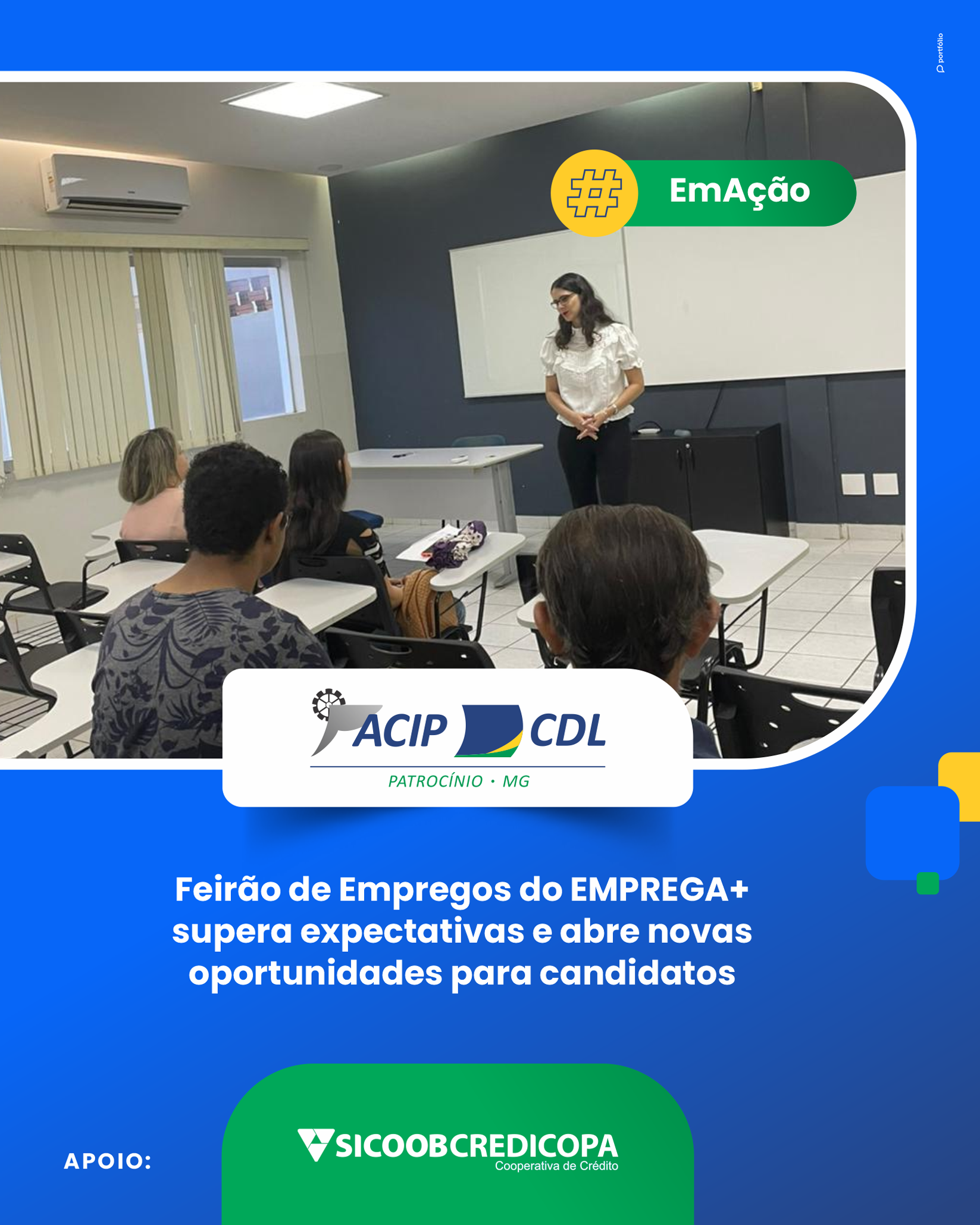 A Associação Comercial e Industrial de Patrocínio e a Câmara de Dirigentes Lojistas promoverão o 1º Feirão de Empregos de 2025, realizado por meio do programa Emprega + ACIP/CDL. O evento acontecerá no dia 18 de janeiro, sábado, das 8h às 12h, na sede das entidades, localizada na Rua Joaquim Carlos dos Santos, 141, em Patrocínio-MG.