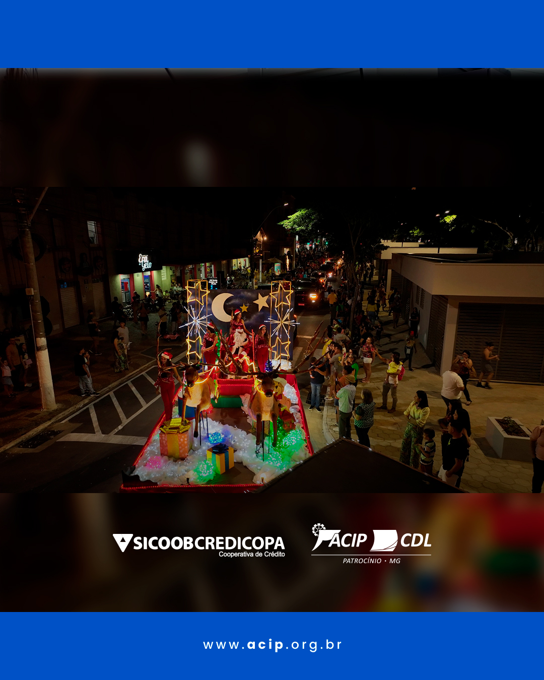 A programação realizada pelas ACIP/CDL em parceria com a Prefeitura de Patrocínio, prevê carreata do Papai Noel pela Rui Barbosa, inauguração da iluminação natalina, entre outros momentos, shows na Praça Santa Luzia