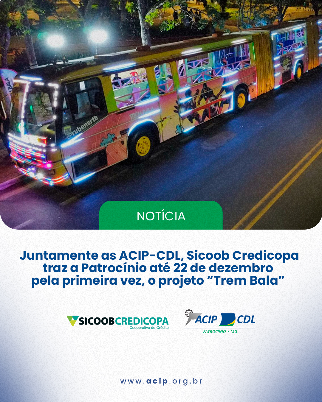 Por meio da parceria entre o Sicoob Credicopa, a Associação Comercial e Industrial de Patrocínio (ACIP) e a Câmara de Dirigentes Lojistas (CDL), Patrocínio receberá, de 05 a 22 de dezembro, a primeira edição do projeto “Trem da Alegria – Cooperar e Semear Sorrisos”. A iniciativa da Credicopa busca proporcionar entretenimento para a cidade e região, impulsionar o comércio, promover o turismo e apoiar obras sociais, neste caso com a receita revertida à Casa do Idoso de Patrocínio Recanto São Vicente de Paulo.