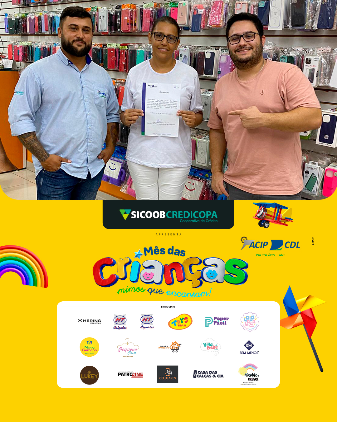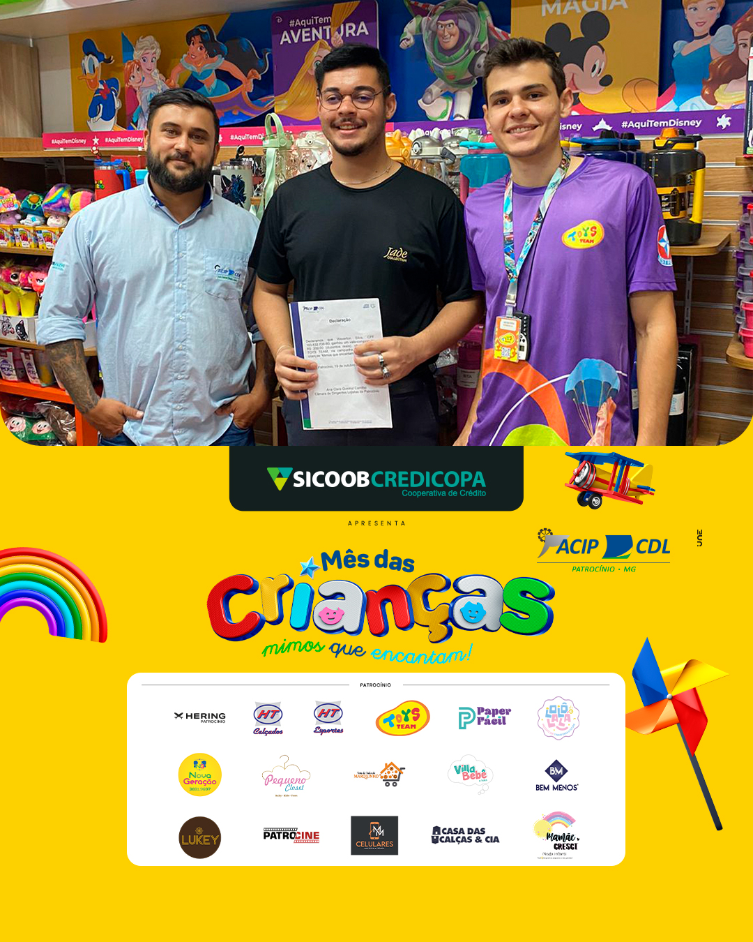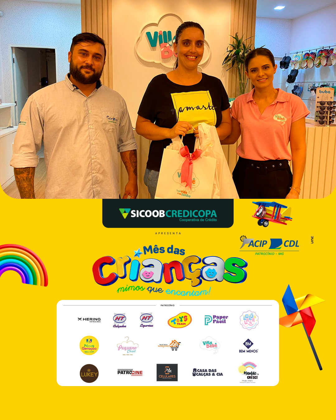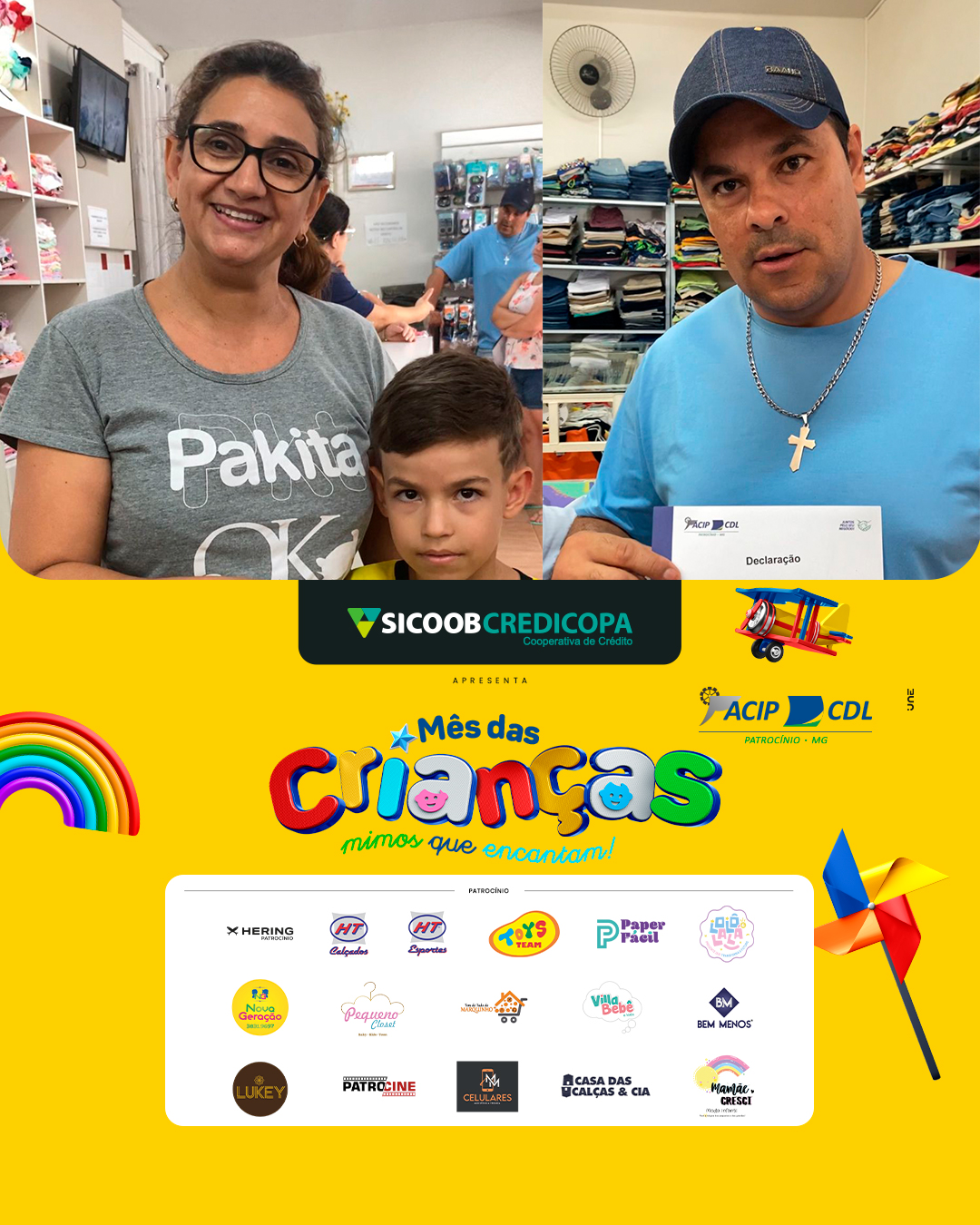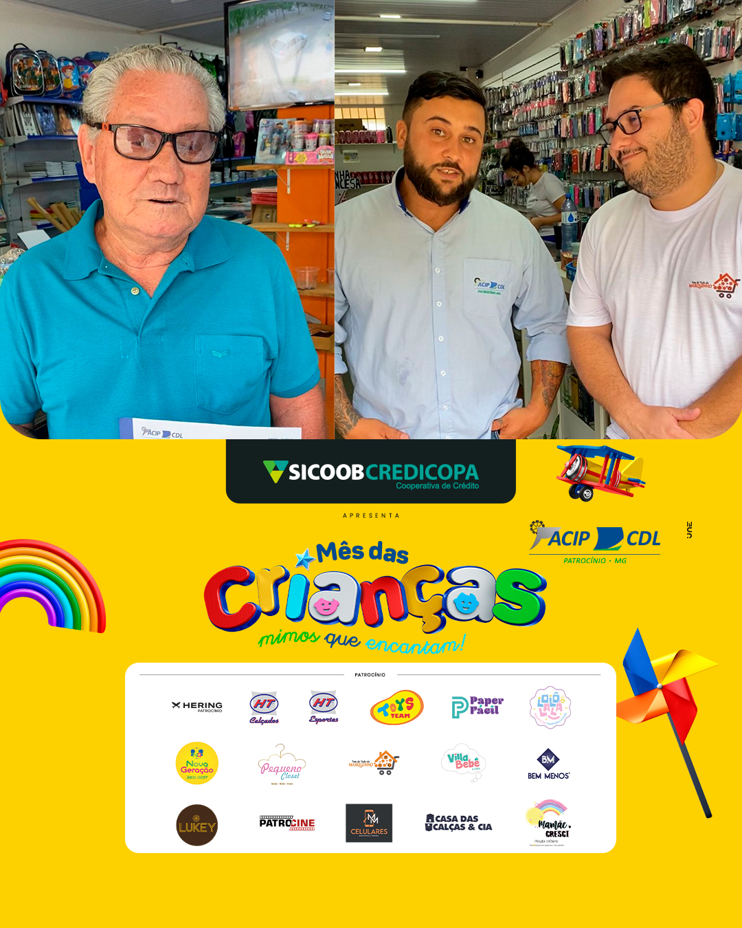 A Associação Comercial e Industrial de Patrocínio – ACIP, e a Câmara de Dirigentes Lojistas de Patrocínio – CDL, realizaram no período de 01 a 22 de outubro, junto ao comércio local, a Campanha “Mimos que Encantam” alusiva ao Mês das Crianças.