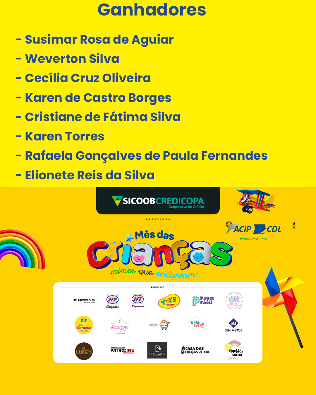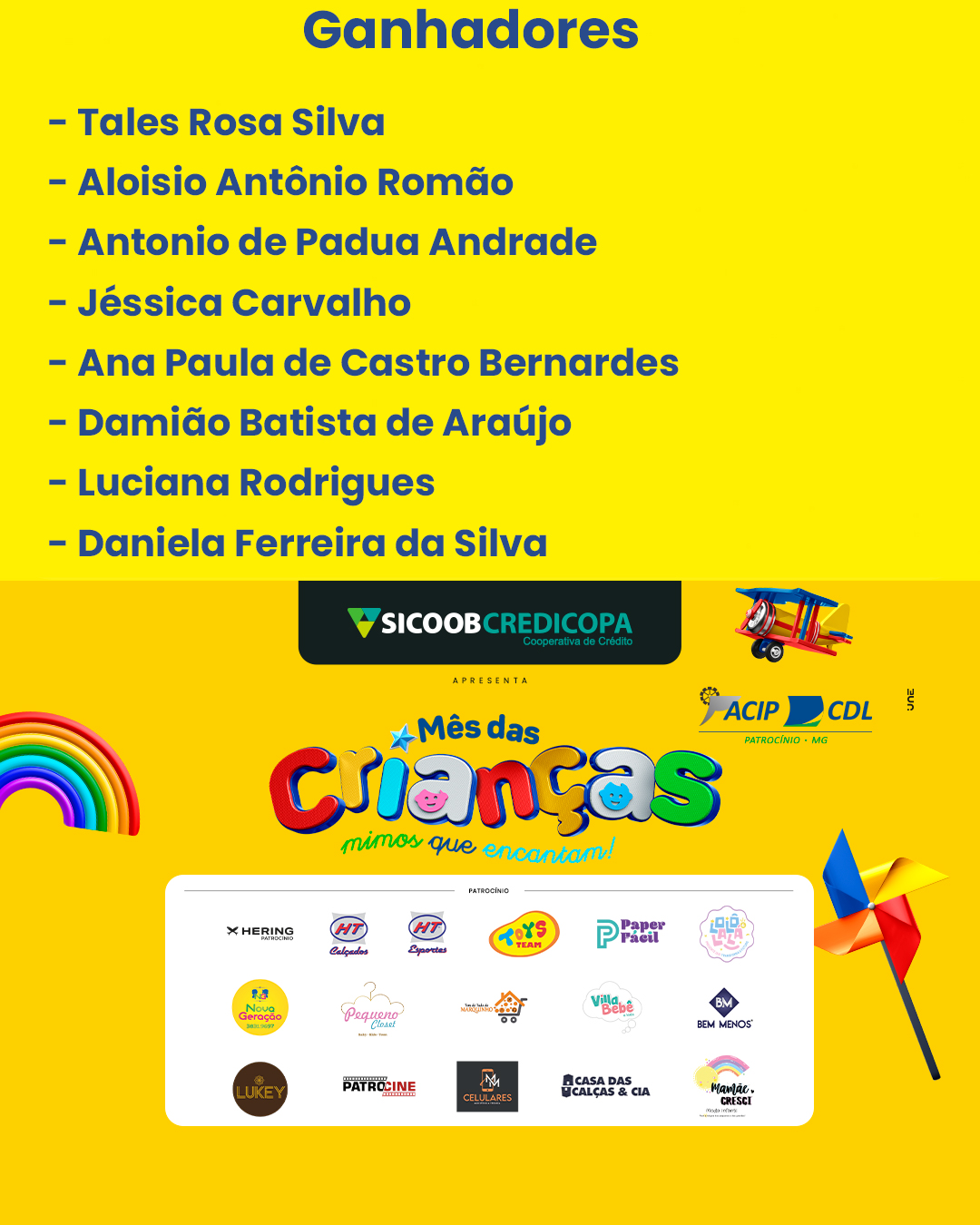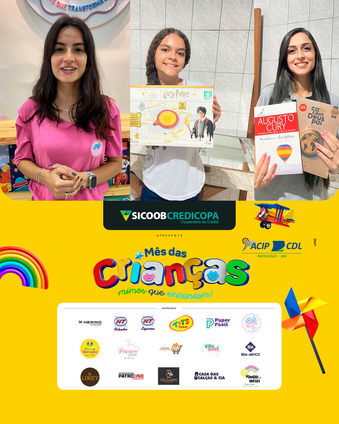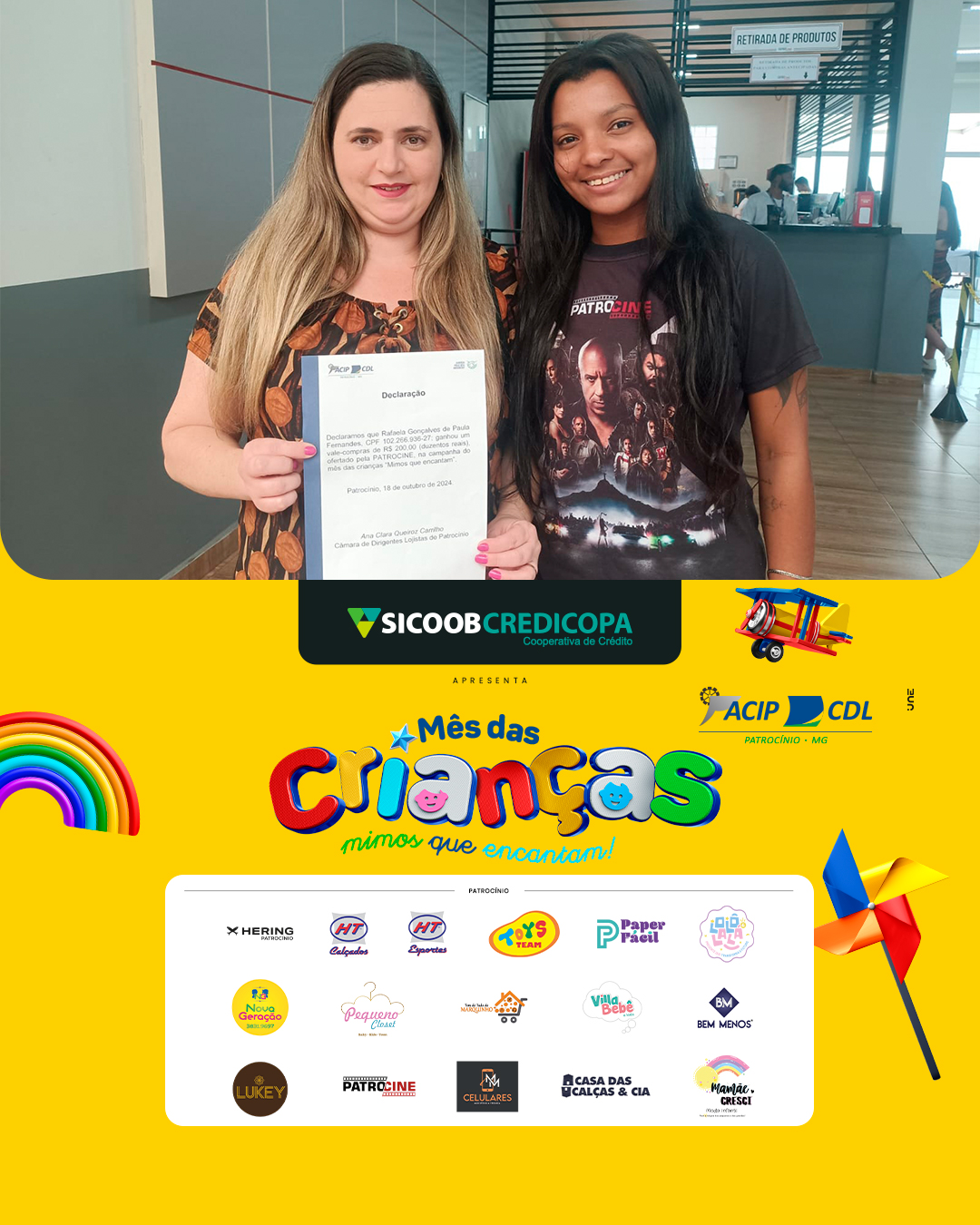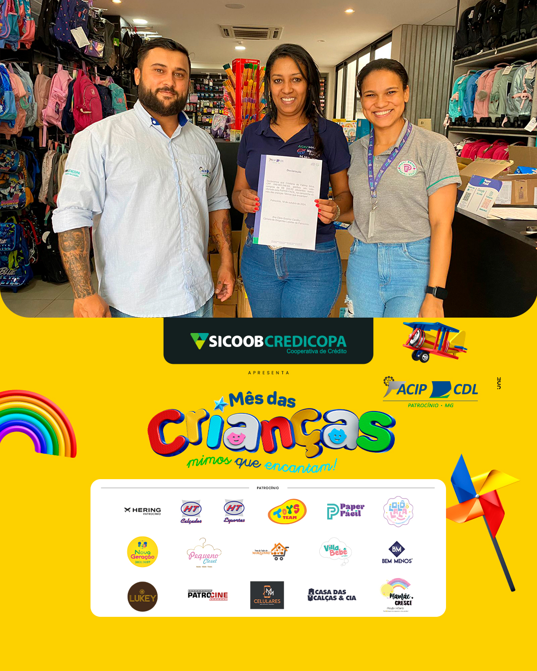 A Associação Comercial e Industrial de Patrocínio – ACIP, e a Câmara de Dirigentes Lojistas de Patrocínio – CDL, realizaram no período de 01 a 22 de outubro, junto ao comércio local, a Campanha “Mimos que Encantam” alusiva ao Mês das Crianças.