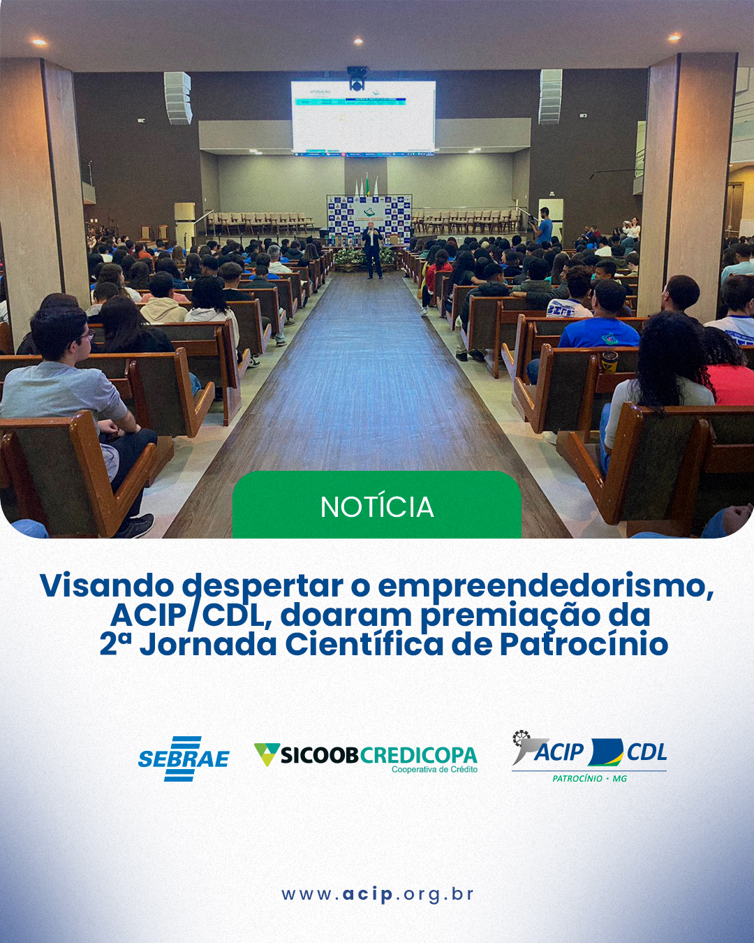 A Associação Comercial e Industrial de Patrocínio – ACIP e Câmara de Dirigentes Lojistas – CDL, igual ao ano passado, neste ano de 2024, foram grandes parceiras do projeto educacional. A Jornada Cientifica teve como objetivo despertar nos alunos o gosto e interesse pelos estudos, e reuniu 19 escolas das redes, municipal e estadual de Patrocínio, e teve cerca de 1200 alunos envolvidos. Sendo alunos do Ensino Fundamental e do Ensino Médio, ao todo, foram 27 grupos participantes na apresentação de projetos tendo o empreendedorismo como temática principal.