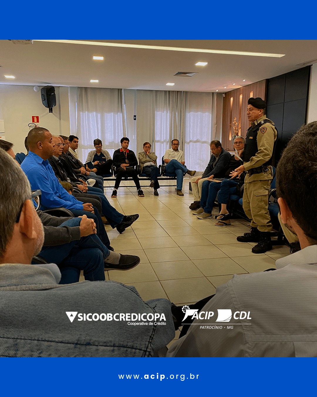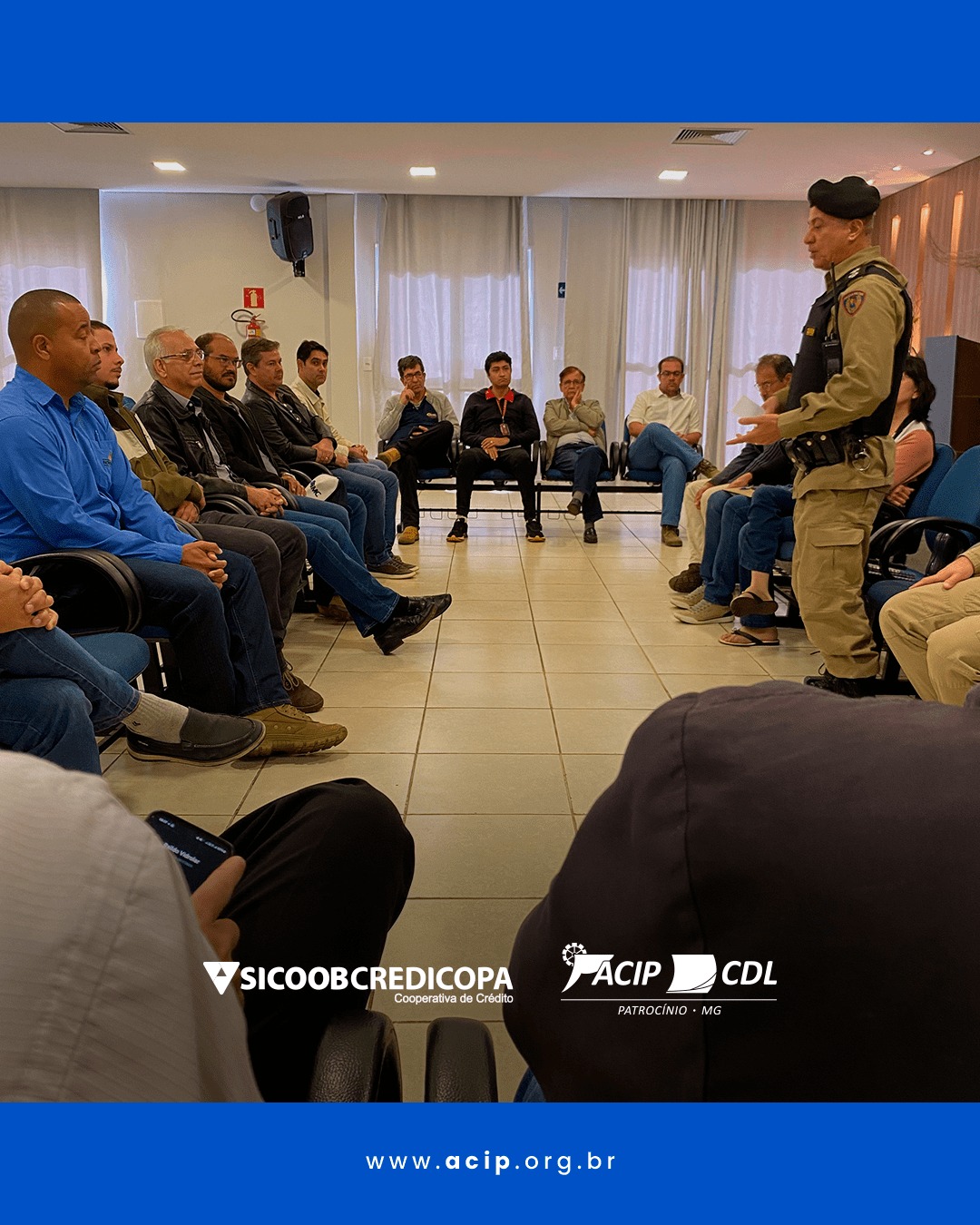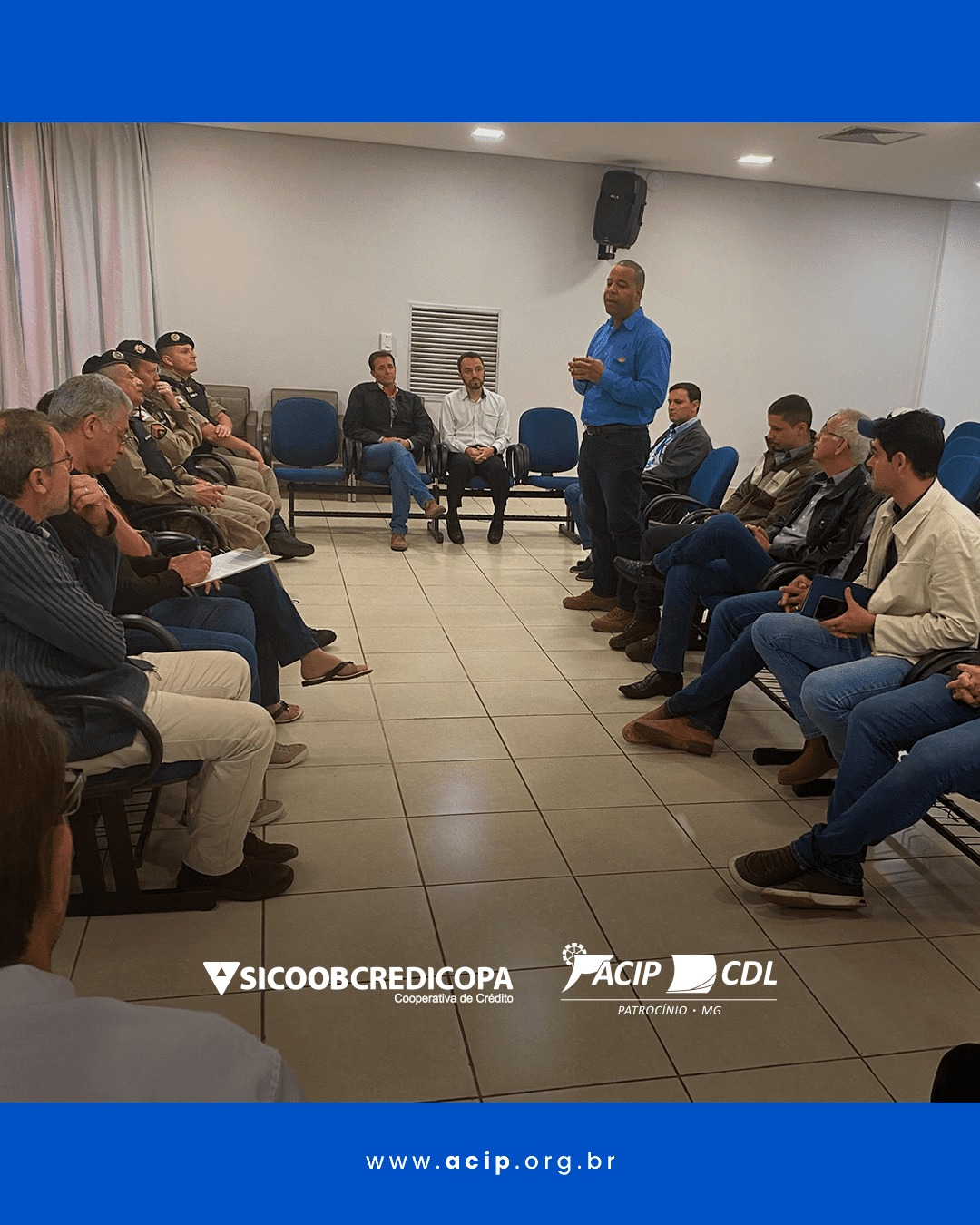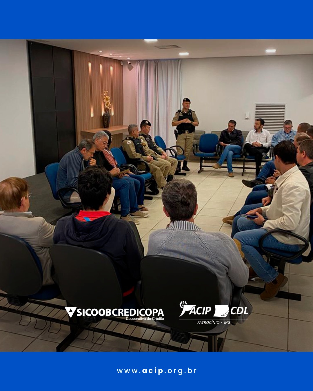 Na manhã da última terça-feira (13), no auditório da Associação Comercial e Industrial de Patrocínio – ACIP e da Câmara de Dirigentes Lojistas - CDL aconteceu uma reunião com militares do 46º Batalhão da Polícia Militar de Patrocínio, para discutir e planejar ações para melhorar a segurança pública na cidade em especial nas áreas do comércio, no Centro e bairros. A ação foi proposta pelos presidentes da ACIP, Wander Júnior De Carvalho, e da CDL, Thiago Batista De Almeida e liderada pelo diretor adjunto de Proteção ao Comércio das ACIP/CDL, José Vicente Ferreira.