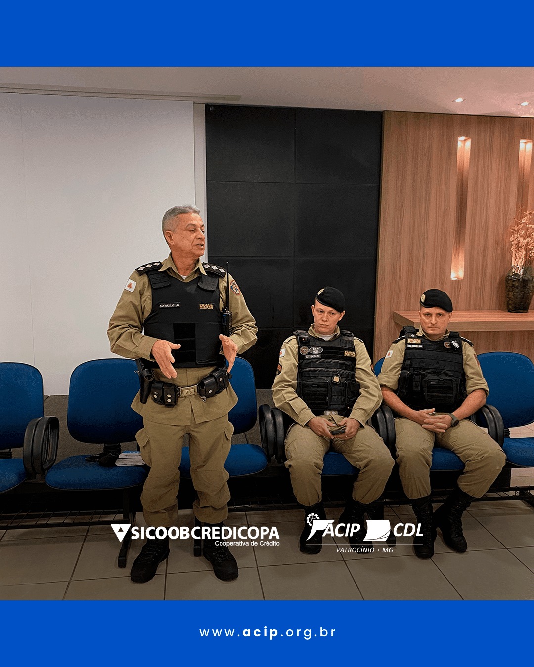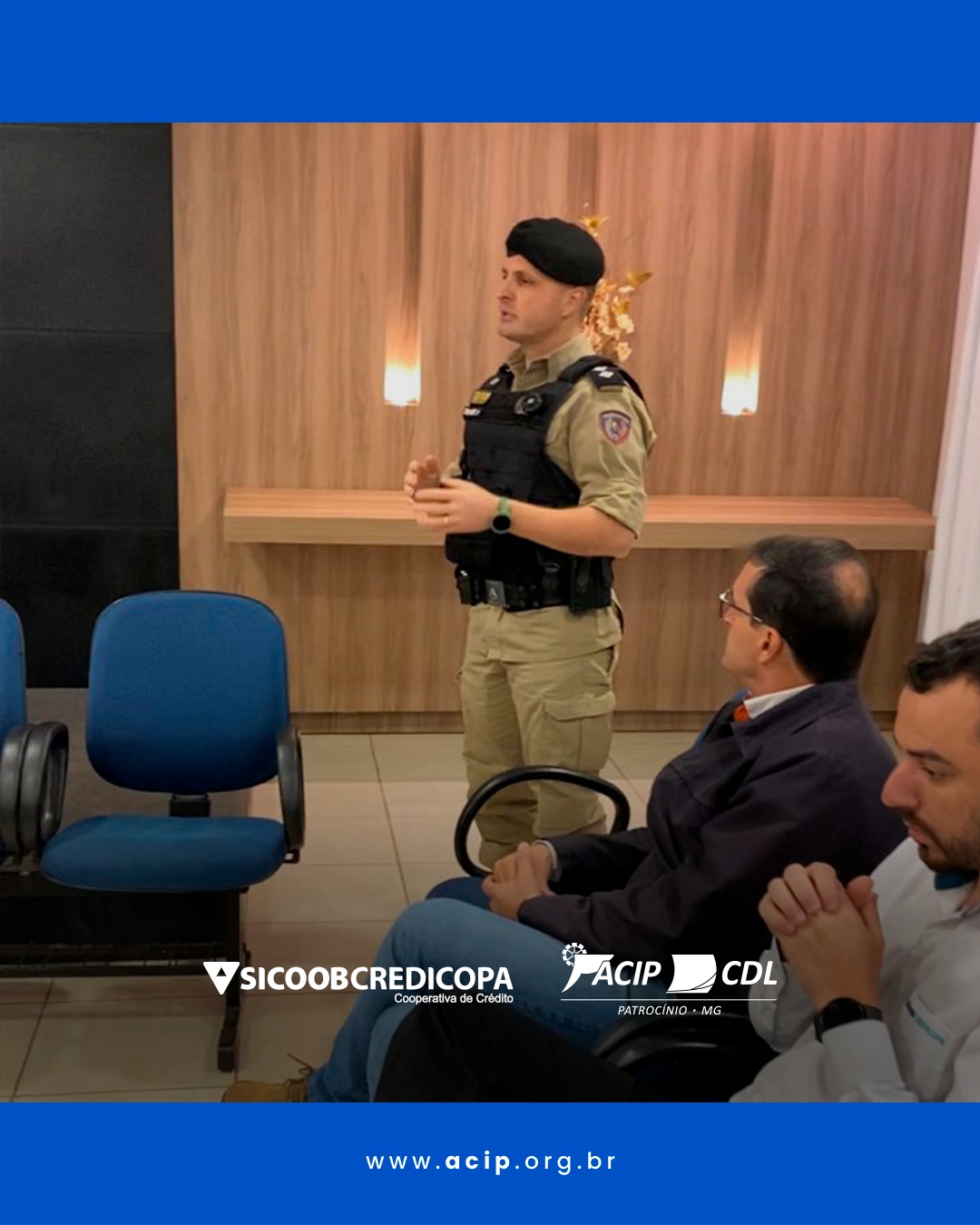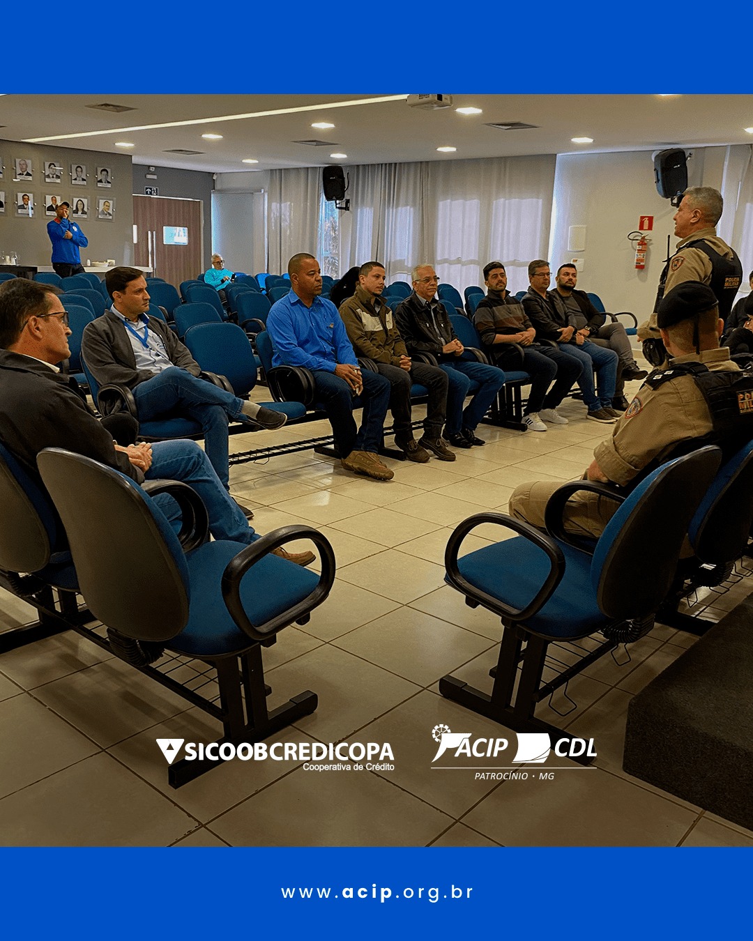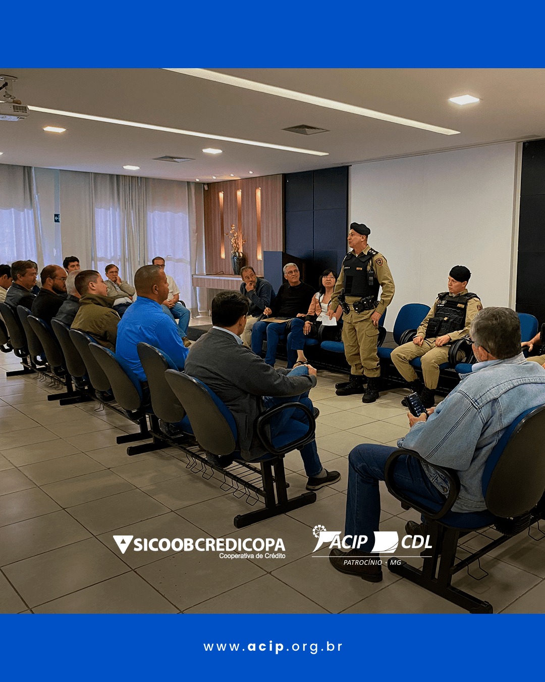 Na manhã da última terça-feira (13), no auditório da Associação Comercial e Industrial de Patrocínio – ACIP e da Câmara de Dirigentes Lojistas - CDL aconteceu uma reunião com militares do 46º Batalhão da Polícia Militar de Patrocínio, para discutir e planejar ações para melhorar a segurança pública na cidade em especial nas áreas do comércio, no Centro e bairros. A ação foi proposta pelos presidentes da ACIP, Wander Júnior De Carvalho, e da CDL, Thiago Batista De Almeida e liderada pelo diretor adjunto de Proteção ao Comércio das ACIP/CDL, José Vicente Ferreira.