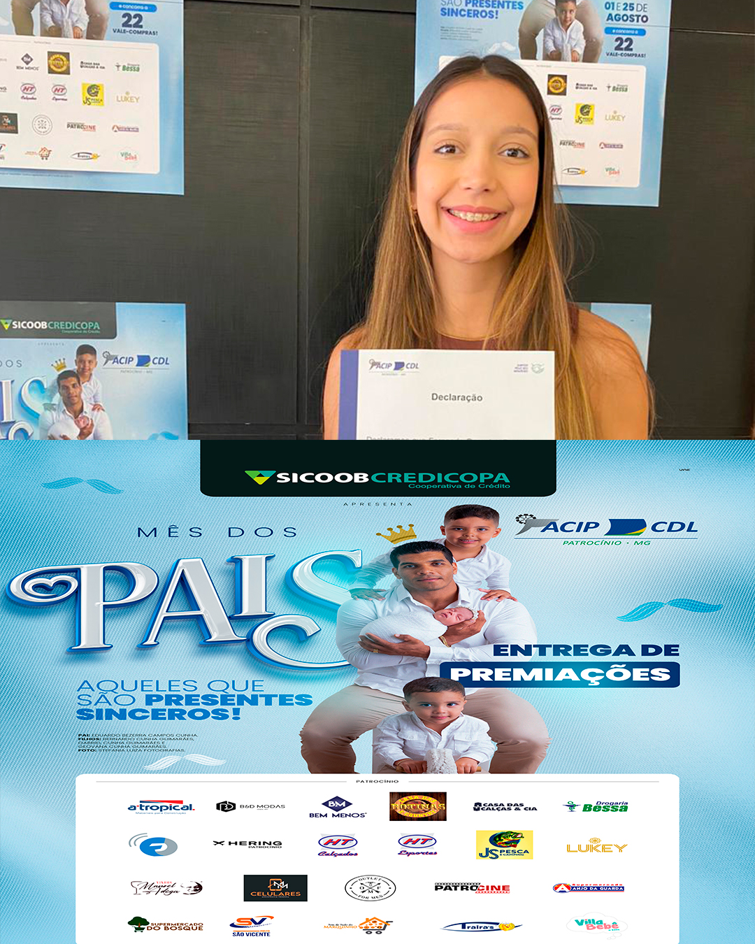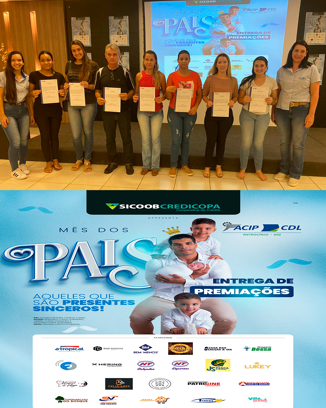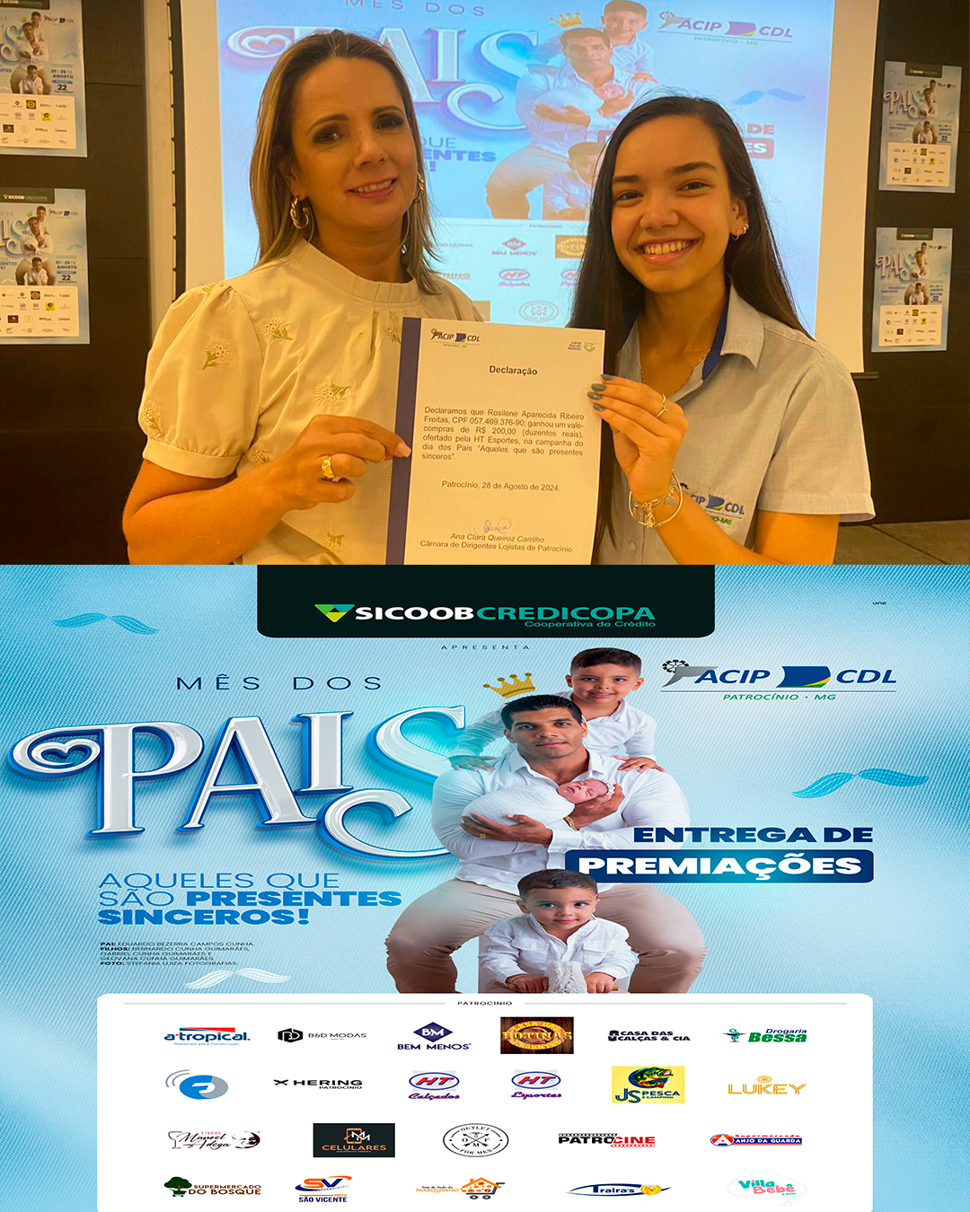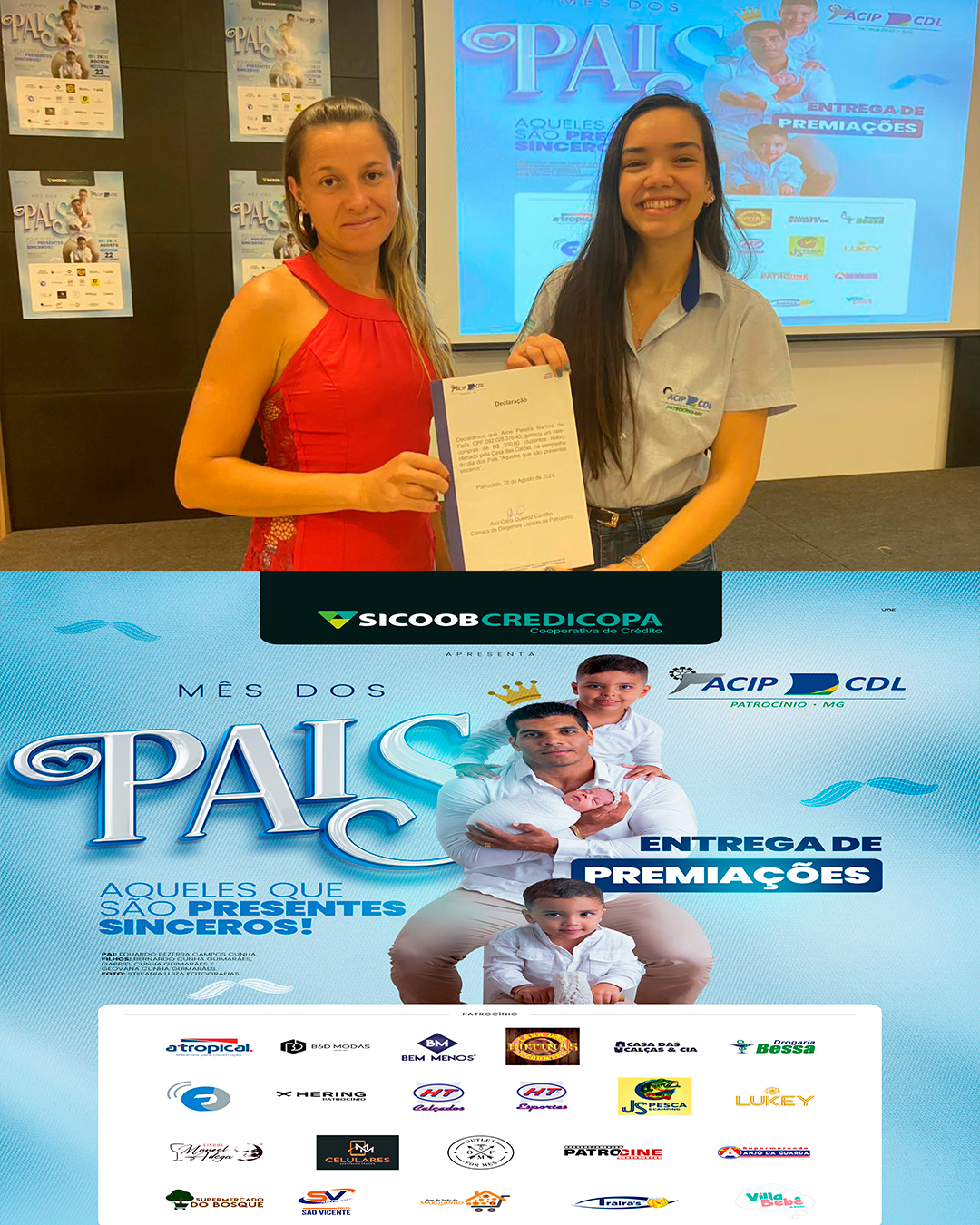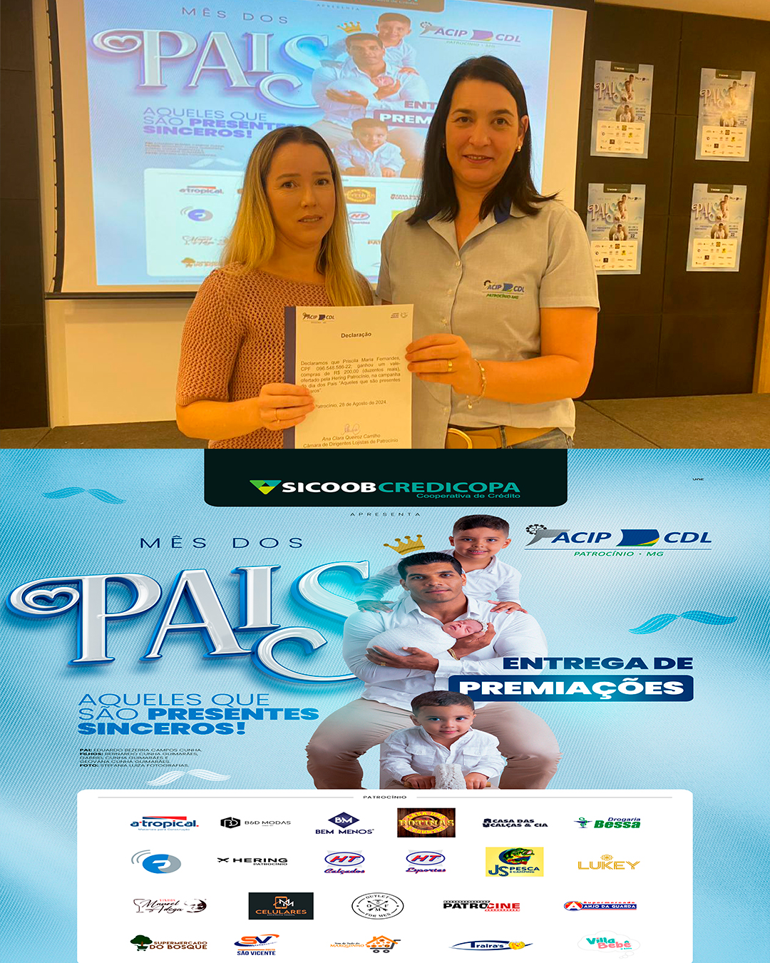 A Campanha do Dia dos Pais faz parte da Campanha de Valorização do Comércio Local, que é realizada através da parceria entre as ACIP/CDL, e o Sicoob Credicopa. Neste mês de agosto, foram 22 vales-compras instantâneos no valor de R$200,00, (duzentos reais) cada um, para serem gastos nas empresas específicas de cada vale-compras, pelo ganhador.