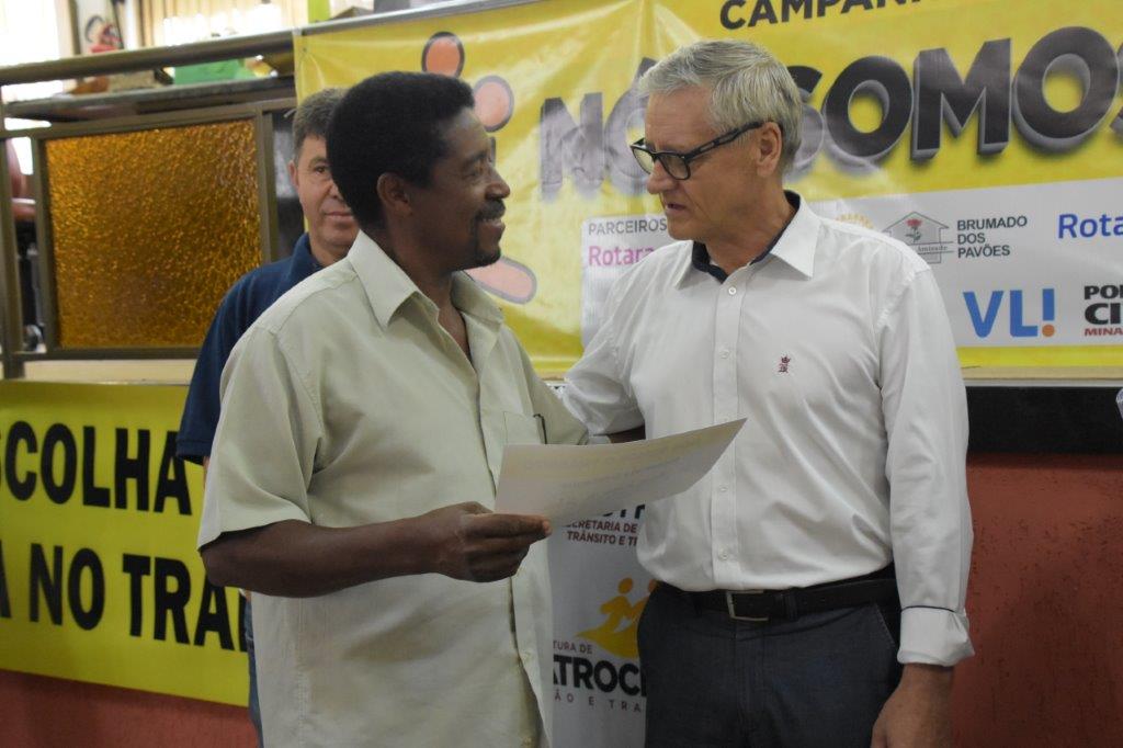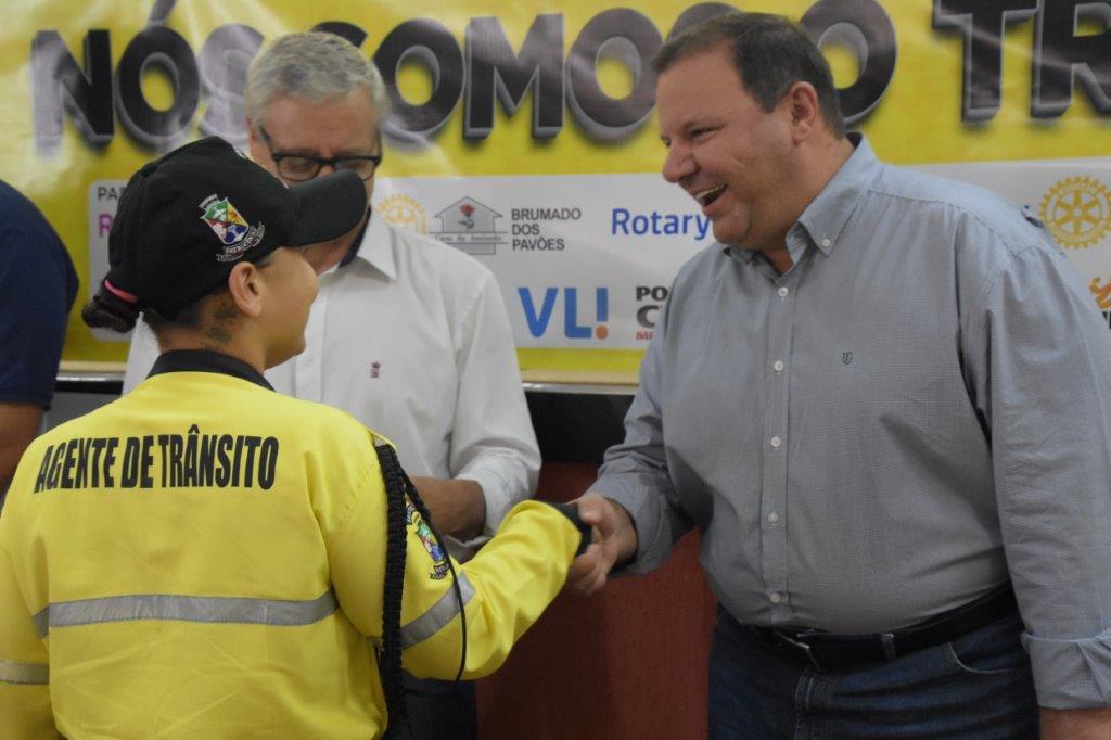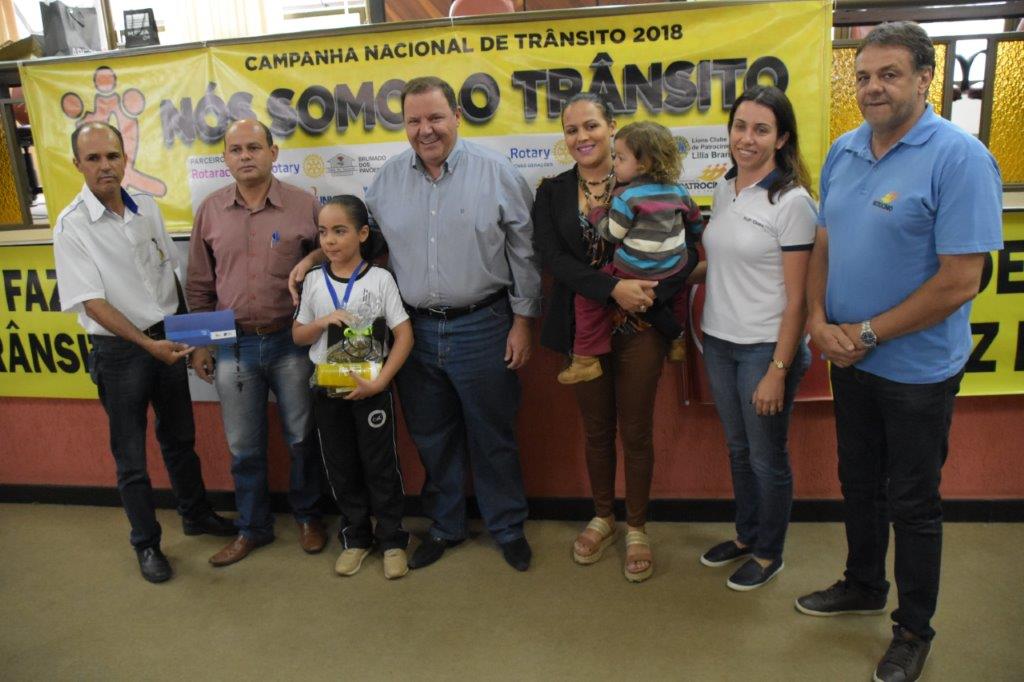 O prefeito Deiró Marra, o subsecretário de Segurança Pública, Trânsito e Transportes Major Divaldo Nestor, o presidente do Rotary Club de Patrocínio Brumado dos Pavões Diego Magalhães Gabriel e outras autoridades, estudantes, professores e imprensa estiveram presentes.
