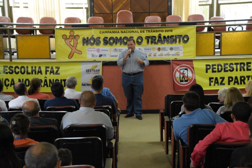 Com uma solenidade oficial, foi aberta nesta segunda-feira (17) no auditório Geraldo Campos da Prefeitura Municipal, a "Semana do Trânsito 2018", que acontece entre os dias 17 e 23 de setembro tendo como tema “Nós somos o trânsito”. As ACIP/CDL são parceiras da iniciativa e o presidente da CDL Cezar dos Reis representou as entidades na abertura oficial.