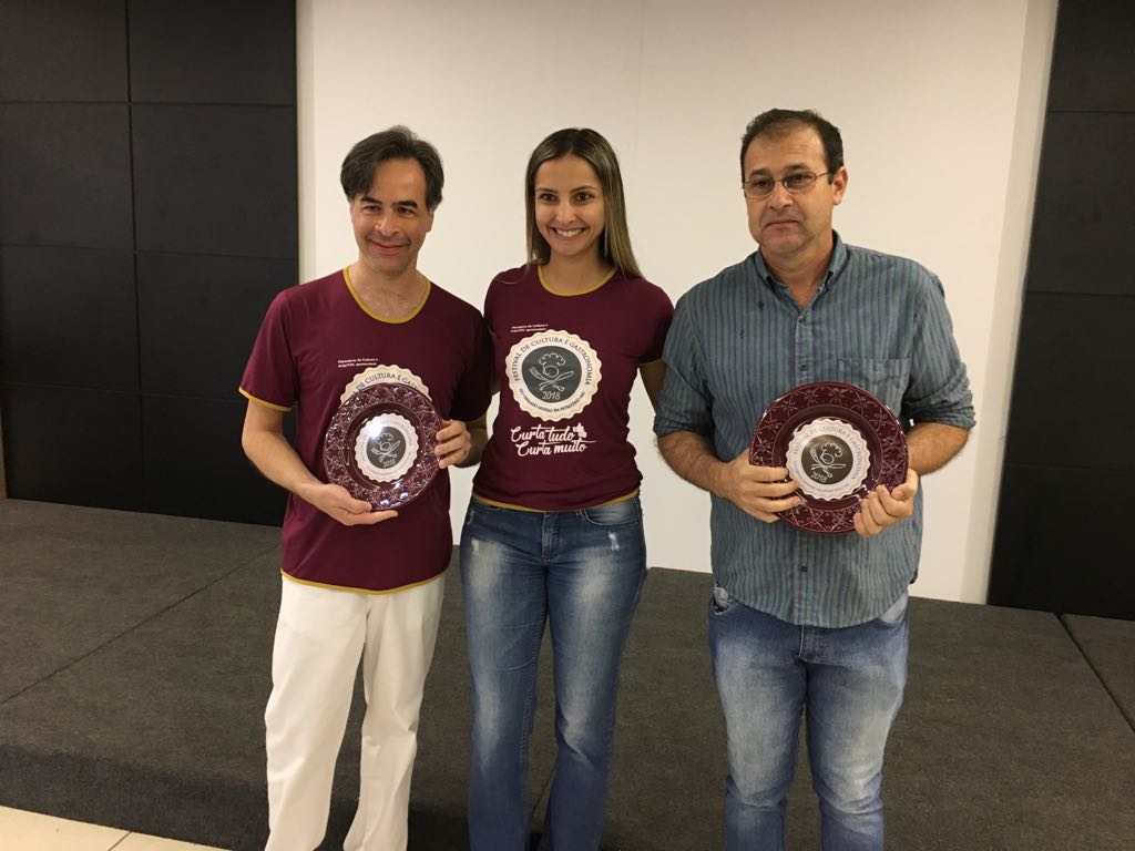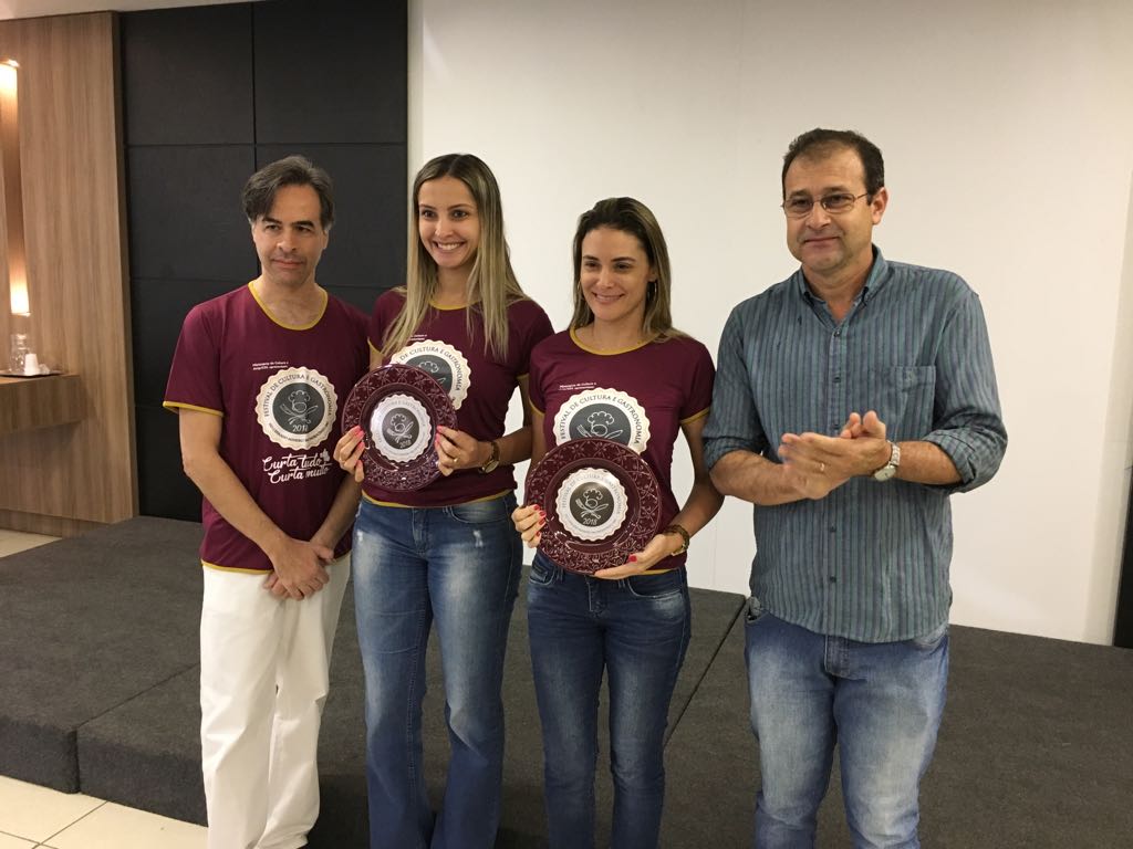 Na sequência, houve uma homenagem a pessoas que participaram ativamente no IV Festival de Cultura e Gastronomia do Cerrado em Patrocínio realizado mês passado. Receberam pratos com a marca do festival como forma de agradecimento a gerente-executiva Cleide Ribeiro (em nome de todos os funcionários das ACIP/CDL), Vânia Borges (curadora das atrações musicais do evento), Angélica Parreira (coordenadora das oficinas gastronômicas) e Camila Nayara Gonçalves (consultora do Programa Empreender das ACIP/CDL e coordenadora do festival). Por sua vez, a coordenadora Camila também fez questão de presentear os presidentes Aldo e Cezar por suas decisivas participações em mais uma edição do festival.